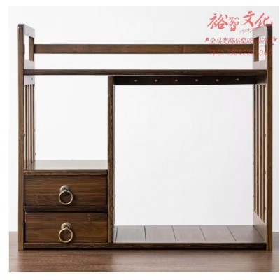 御宝阁文房四宝楠竹毛笔架笔挂收纳架摆件创意博古架书法练字专用毛笔收纳盒毛笔笔架笔搁笔架山书法工具用品 双层抽屉款 博古架 (SKU:yzwhyp929649