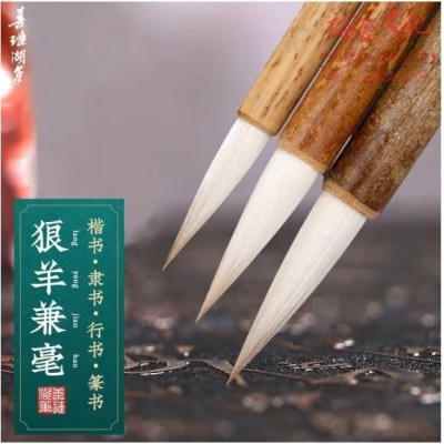 善琏湖笔 毛笔套装 羊狼毫墨汁书法国画套装初学者行草楷隶篆书笔文房四宝 羊狼毫大中小三支装 (SKU:yzwhyp929716