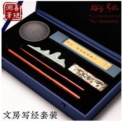 善琏湖笔 文房四宝套装笔墨纸砚笔架实木镇尺镇纸湖笔毛笔礼盒套装墨条笔搁书法用品高档摆件笔墨纸砚 蓝色海洋套装 (SKU:yzwhyp929722
