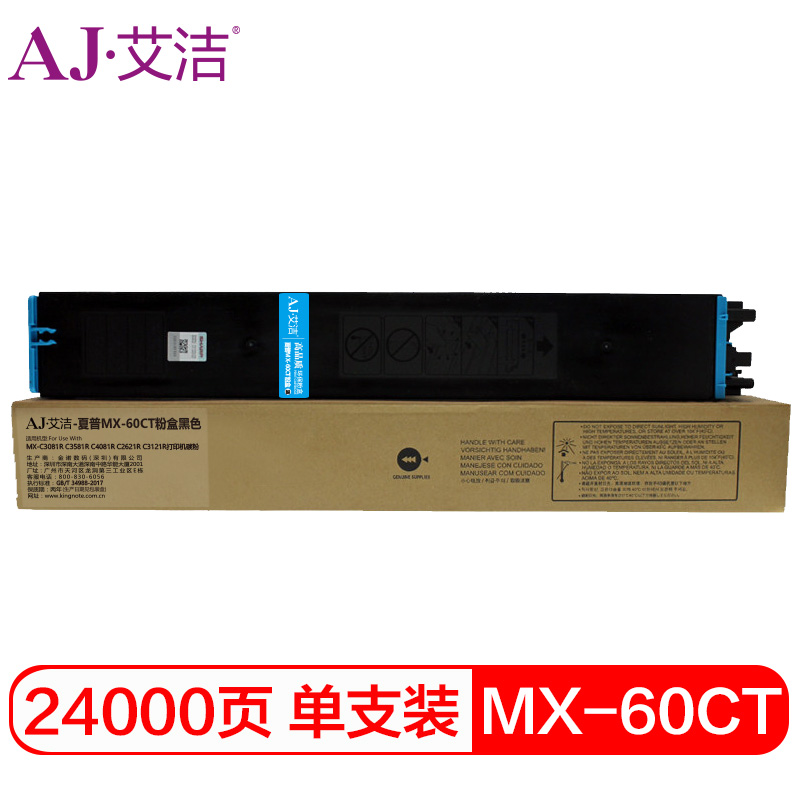 艾洁 夏普MX-60CT粉盒蓝色大容量 适用MX-C3081R C3581R C4081R C2621R C3121R打印机碳粉(SKU:yzwhyp929784