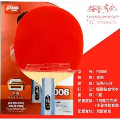 红双喜(DHS)乒乓球拍六星直拍R6006进攻型双面反胶单拍附拍套(SKU:yzwhyp929805
