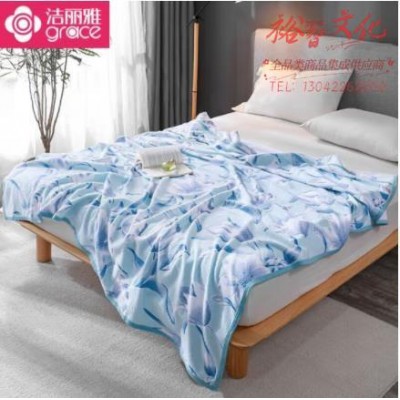 洁丽雅 毛毯纯棉 毛巾被四季盖毯 蓝色郁金香 180*220cm(SKU:yzwhyp929838