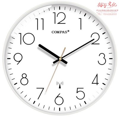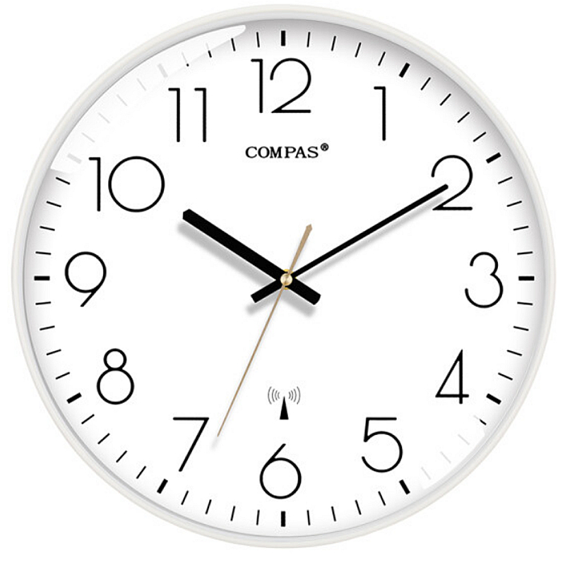 康巴丝(Compas)挂钟客厅卧室简约石英钟表挂墙自动对时电波钟 C6219B 纯洁白(SKU:yzwhyp930067