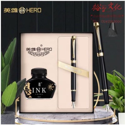 英雄(HERO)钢笔礼盒年会奖品 1519A铱金商务办公文具钢笔签字书写墨水套装 黑色 (SKU:yzwhyp930072