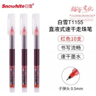 白雪(snowhite)T1155中性笔简约无印风0.5mm大容量直液式速干走珠签字笔办公用品 红色10支 (SKU:yzwhyp930086