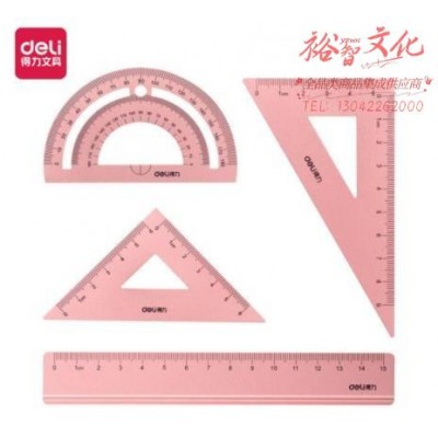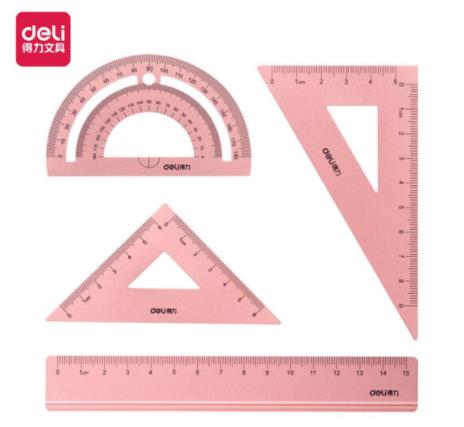 得力(deli)金属磨砂学生绘图考试套尺(直尺 三角尺*2 量角器)4件套 粉色79516(SKU:yzwhyp930151