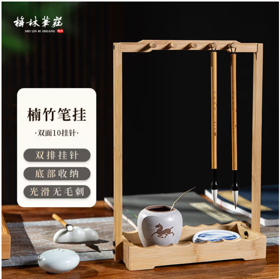 首页 > 办公用品 > 文具 > 梅林笔庄楠竹笔挂实木10针毛笔架搁笔桌面收纳文房四宝多功能书法拼接简约中国风摆件 (SKU:yzwhyp930157