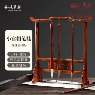 梅林笔庄 红木笔架毛笔挂 高档实木毛笔书法文房四宝复古榫卯拼接中国风 14针红贵宝小官帽笔挂 (SKU:yzwhyp930158