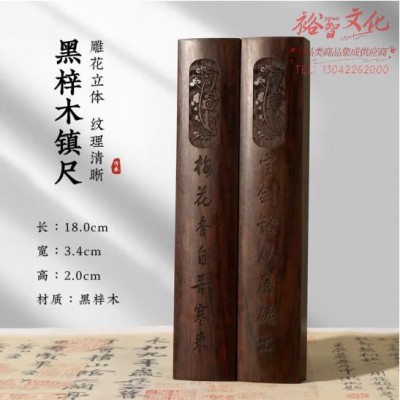 梅林笔庄镇尺实木毛笔书法国画初学者学生压纸镇纸笔搁文房四宝中国风摆件黑梓木一对 (SKU:yzwhyp930160