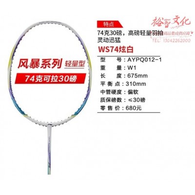 李宁(LI-NING)羽毛球拍WS74碳纤维74g高磅 AYPQ004-1炫彩白(SKU:yzwhyp930180