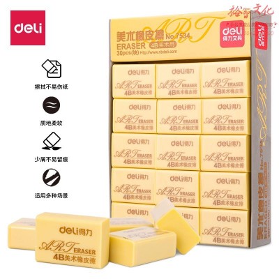 得力(deli)学生橡皮擦 绘画4B黄色美术绘图考试橡皮 30块分享装 7534(SKU:yzwhyp930190