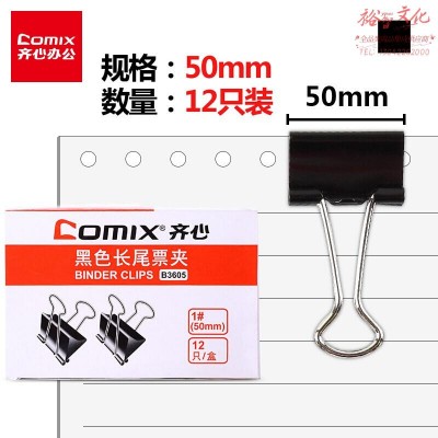 齐心(COMIX)12只装50mm黑色金属长尾票夹B3605(SKU:yzwhyp930262