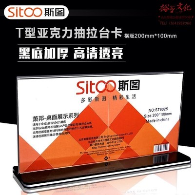 斯图sitoo 台牌抽拉台卡台签双面T型亚克力桌牌桌签会议牌酒水牌 6025横版 1个装 20*10cm(SKU:yzwhyp930265