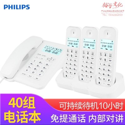 首页 > 通信设备 > 普通电话机(不包含移动电话) > 飞利浦(PHILIPS)无绳电话机 无线座机 子母机 办公家用 信号覆盖广 屏幕白色背光 DCTG167一拖三白色(SKU:yzwhyp930339