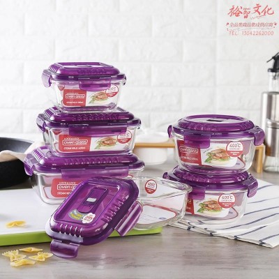 乐扣乐扣 耐热玻璃保鲜盒6件套礼盒装 带气孔盖 紫色盖保鲜盒六件套LLG445S924 (SKU:yzwhyp930362