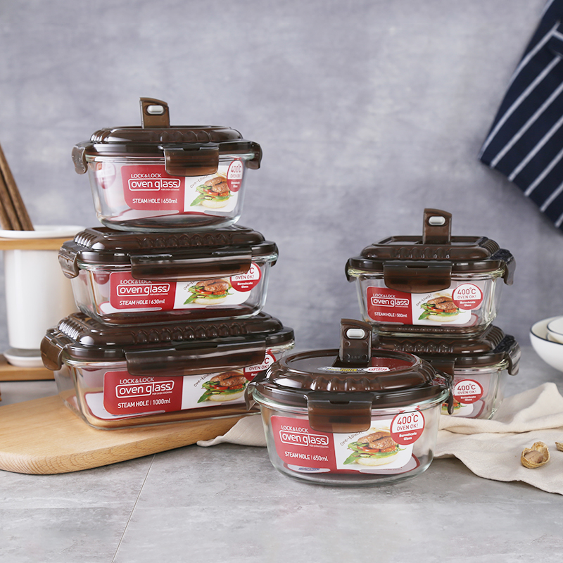 乐扣乐扣 耐热玻璃保鲜盒6件套 带气孔盖 咖色盖保鲜盒六件套LLG445S925 (SKU:yzwhyp930363
