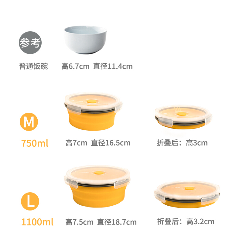 蕉趣 硅胶折叠碗 便携式折叠餐具L 大号(1100ml)橙色/绿色可选(SKU:yzwhyp930372