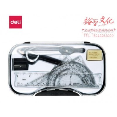 得力(deli)夹铅笔圆规直尺绘图套装 带橡皮卷笔刀学生7件套72151(SKU:yzwhyp930415