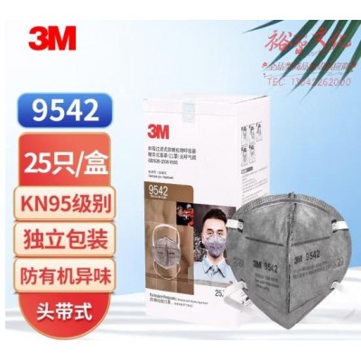 3M 9542活性炭口罩头带折叠式KN95防颗粒物粉尘有机蒸气防护口罩25个(1盒) (SKU:yzwhyp930441