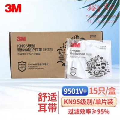 3M 9501V 网络版KN95口罩带呼吸阀耳带式防工业粉尘颗粒物防护口罩 15个(1盒) (SKU:yzwhyp930442