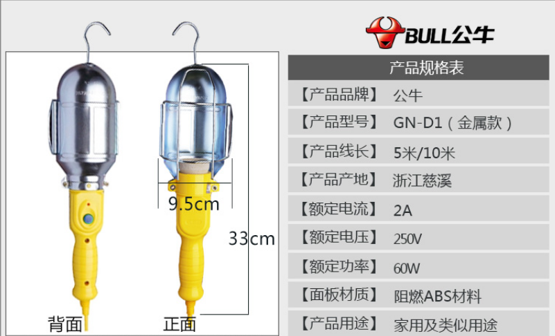 公牛(BULL)GN-D1汽修灯移动灯/工作灯行灯检修灯接线板 10米 (SKU:yzwhyp930472