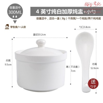 瓷航 炖盅陶瓷 带盖隔水炖 4英寸纯白加厚炖盅配瓷勺(SKU:yzwhyp930523