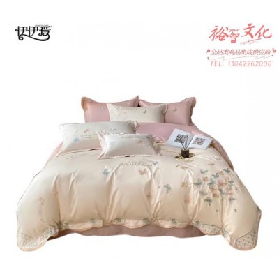 伊伊爱 翩翩起舞刺绣100支全棉四件套(单位:套) 翩翩起舞-雪粉色 200*230cm/DTJ0KL02201661(SKU:yzwhyp930620