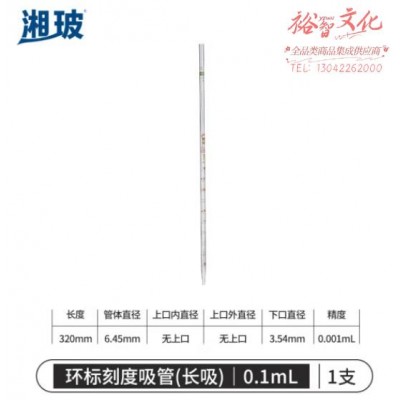 比克曼生物 湘玻 环标刻度移液管玻璃吸管玻璃滴管A级可过检吸量管色标取液实验室 0.1mL (SKU:yzwhyp930767