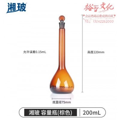 比克曼生物 湘玻 容量瓶玻璃加厚定量瓶定容瓶A级可过检透明棕色磨口具塞耐高温实验室 【棕色】200mL 1个 (SKU:yzwhyp930774