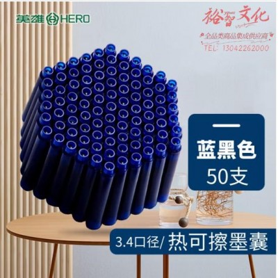 英雄(HERO)热可擦墨囊 2102RT小学三年级练字可替换热敏摩易擦 3.4mm口径 50支装 蓝黑色 (SKU:yzwhyp930830