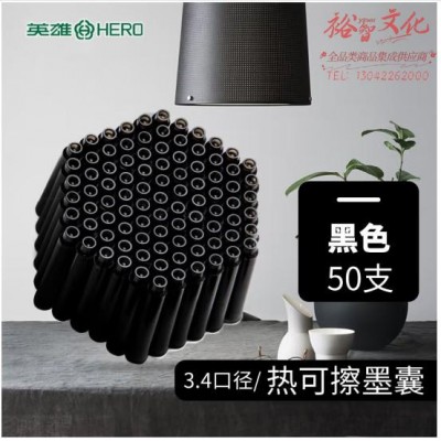 英雄(HERO)热可擦墨囊 2104RT小学三年级练字可替换热敏摩易擦 3.4mm口径 50支装 黑色 (SKU:yzwhyp930832