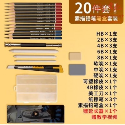 首页 > 办公用品 > 文具 > 蒙玛特(Mont Marte)素描套装20件 素描铅笔绘画工具画画炭笔素描纸2b4b6b初学者练习写生铅笔套装SX-QBTZ0002 (SKU:yzwhyp930840