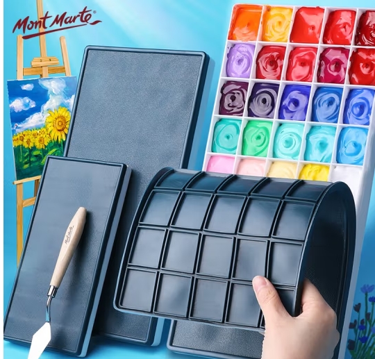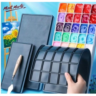 蒙玛特(Mont Marte)颜料盒24格 软盖调色盒水粉绘画调色板美术画画颜料盘套装 便携密封保湿盒2件套SX-ZYPJ-1 (SKU:yzwhyp930875