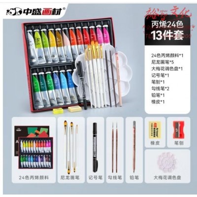 中盛画材(transon) 丙烯 套装24色防水初学者手绘纤维染料儿童安全涂鸦 (SKU:yzwhyp930879