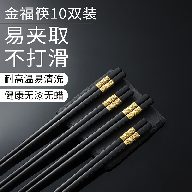 惠寻 筷子 10双装金福绵绵防霉防锈家用餐具套装 (SKU:yzwhyp930953
