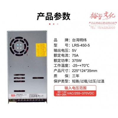 明纬(MEANWELL)开关电源5V 75A输出 替代NES直流DC稳压变压器监控 LRS-450-5 (SKU:yzwhyp931038