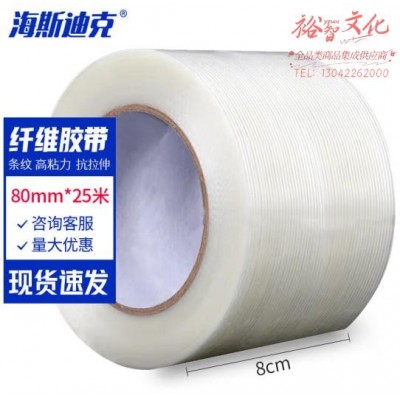 海斯迪克 HK-529 条纹纤维胶带 固定封箱胶带 模切玻璃纤维胶带 80mm*25米长 2卷起订 (SKU:yzwhyp931077
