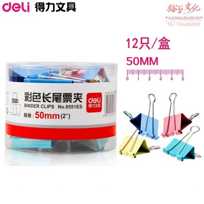 得力 8551ES 省力彩色长尾夹票夹 1#金属燕尾夹票据夹子 50mm 12只/盒(SKU:yzwhyp931089