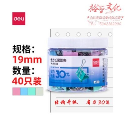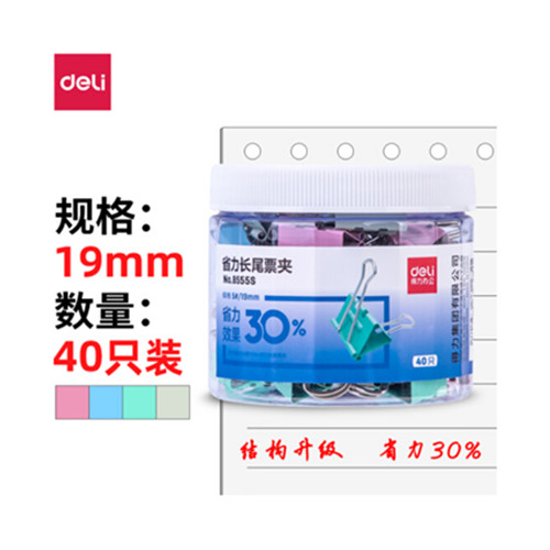 得力(deli)40只19mm省力彩色长尾夹票夹 5#金属燕尾夹票据夹子 8555S(SKU:yzwhyp931098