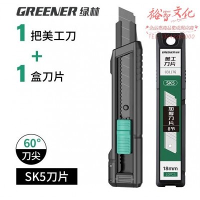 绿林美工刀60°SK5刀片办公裁纸 18mm黑刃美工刀 10片白片 (SKU:yzwhyp931137