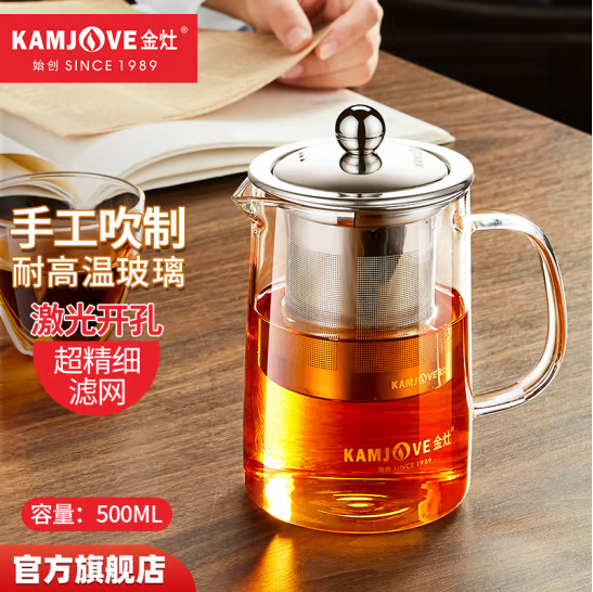 首页 > 用具 > 其他厨房用具 > 金灶(KAMJOVE)茶壶飘逸杯 功夫茶壶 茶水分离玻璃泡茶壶办公室茶具过滤花茶壶 A-03【500ml】(SKU:yzwhyp931225