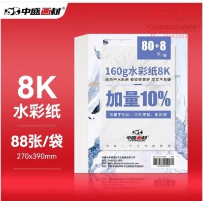 首页 > 办公用品 > 文具 > 中盛画材(transon)8K水彩纸 88张/160g细纹水彩颜料专用画纸 水溶彩铅画纸 加厚8开 (SKU:yzwhyp931249