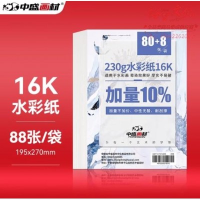 首页 > 办公用品 > 文具 > 中盛画材(transon)16K水彩纸 88张/230g细纹水彩颜料专用画纸 水溶彩铅画纸 加厚16开 (SKU:yzwhyp931250