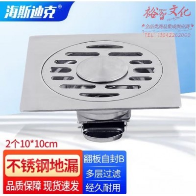 海斯迪克 HK-8005 加厚不锈钢地漏 10*10自封两用防臭地漏 翻板自封B(2321) 2个 (SKU:yzwhyp931311