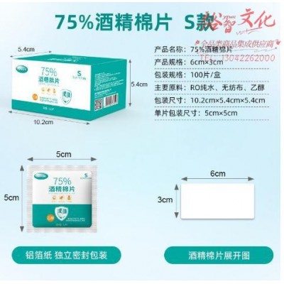 一次性75%酒 精棉片清洁杀菌酒 精棉手机屏幕清洁湿巾【100 片装】3*6cm (SKU:yzwhyp931355