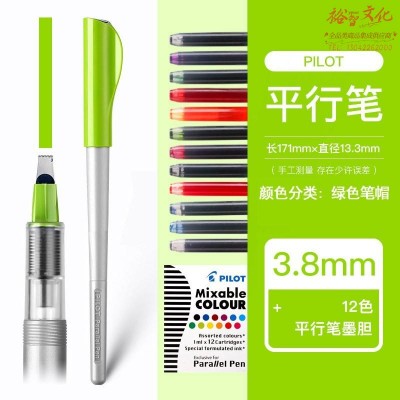 百乐 FP3-SS平行笔 美术美工钢笔 鸭嘴笔 艺术字体英文书法钢笔 【绿色3.8mm 12支彩色墨胆】(SKU:yzwhyp931357