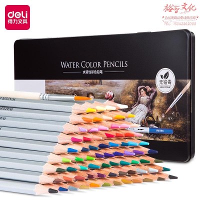 得力(deli)大师彩铅72色铁盒 水溶性彩色铅笔 学生美术生专业手绘涂色绘画笔套装(附毛笔)72色 6524(SKU:yzwhyp931445