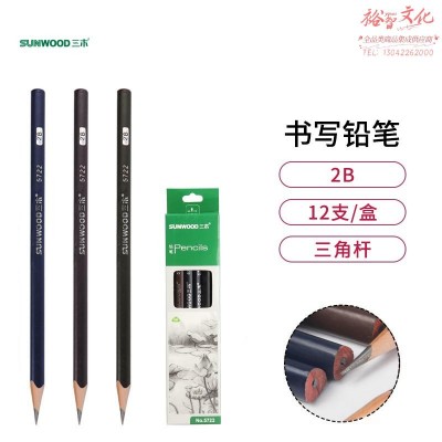 三木(SUNWOOD) 12支2B亚光漆三角杆铅笔素描绘图学生书写铅笔 5722 (SKU:yzwhyp931513