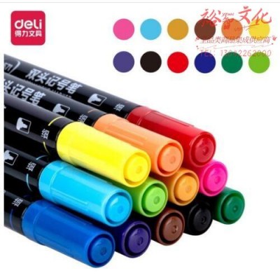 得力(deli)彩色双头记号笔勾线笔马克笔套装 绘画涂鸦彩绘笔 12色DL-S571(SKU:yzwhyp931520