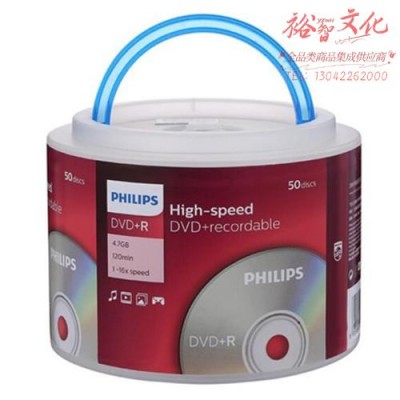 飞利浦(PHILIPS)DVD R光盘/刻录盘 16速4.7G 手拎乖乖桶 桶装50片 (SKU:yzwhyp931627